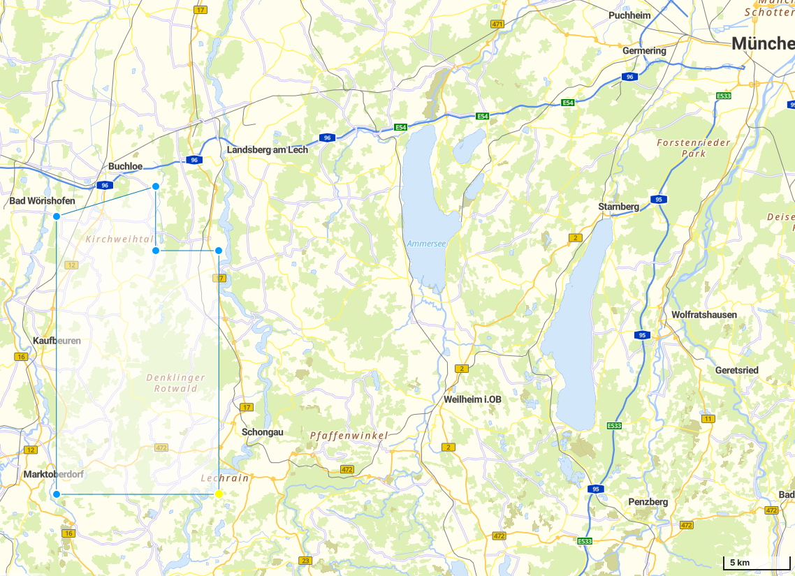 Das Gebiet wird durch einen ein Polygon mit den folgenden Koordinaten beschrieben: