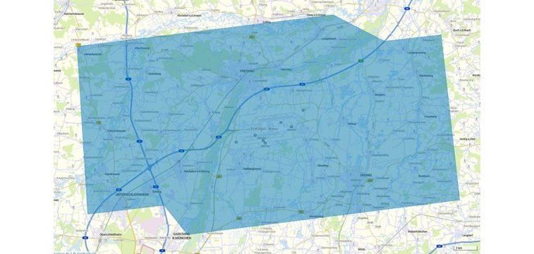 Das Gebiet entspricht der Kontrollzone am Flughafen München und wird durch die folgenden Koordinaten begrenzt: