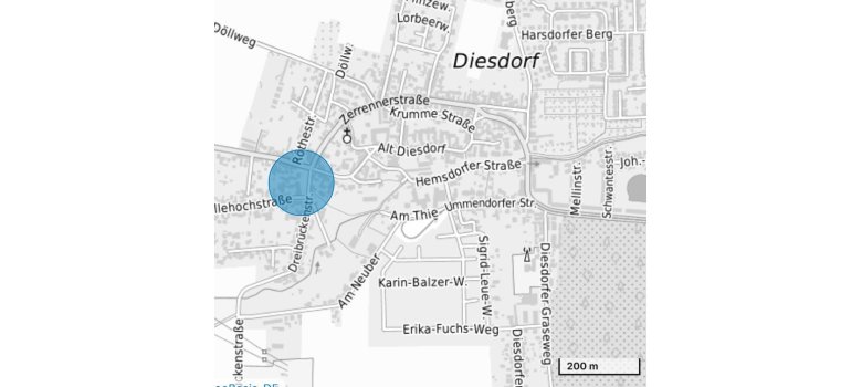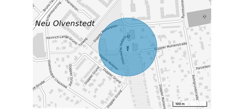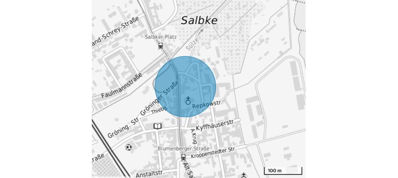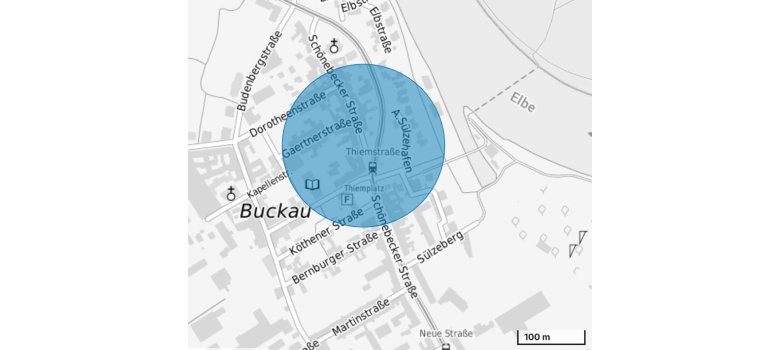 Das geografische Gebiet wird durch einen Kreis mit dem Radius von 100 m begrenzt mit dem Mittelpunkt auf der Koordinate 52.13001N 11.56336E und erstreckt sich vom Boden bis 150 m über dem Boden.