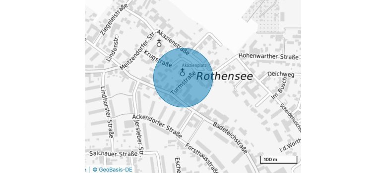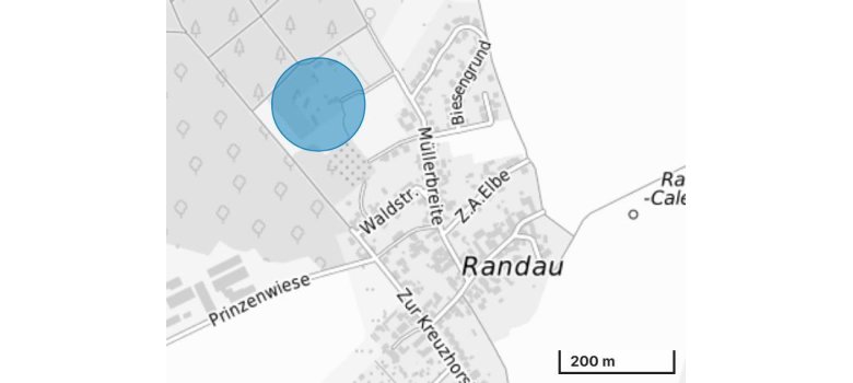 Das geografische Gebiet wird durch einen Kreis mit dem Radius von 100 m begrenzt mit dem Mittelpunkt auf der Koordinate 52.12542N 11.32861E und erstreckt sich vom Boden bis 150 m über dem Boden.
