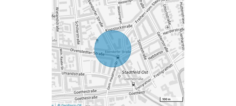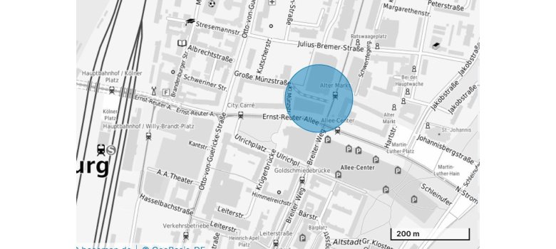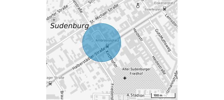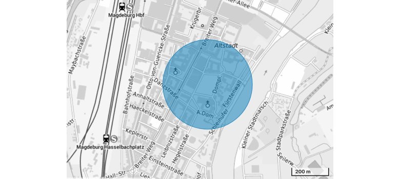 Das geografische Gebiet wird durch einen Kreis mit dem Radius von 150 m begrenzt mit dem Mittelpunkt auf der Koordinate 52.0899N 11.57338E und erstreckt sich vom Boden bis 150 m über dem Boden.