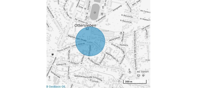 Das geografische Gebiet wird durch einen Kreis mit dem Radius von 100 m begrenzt mit dem Mittelpunkt auf der Koordinate 52.06535N 11.71967E und erstreckt sich vom Boden bis 150 m über dem Boden.