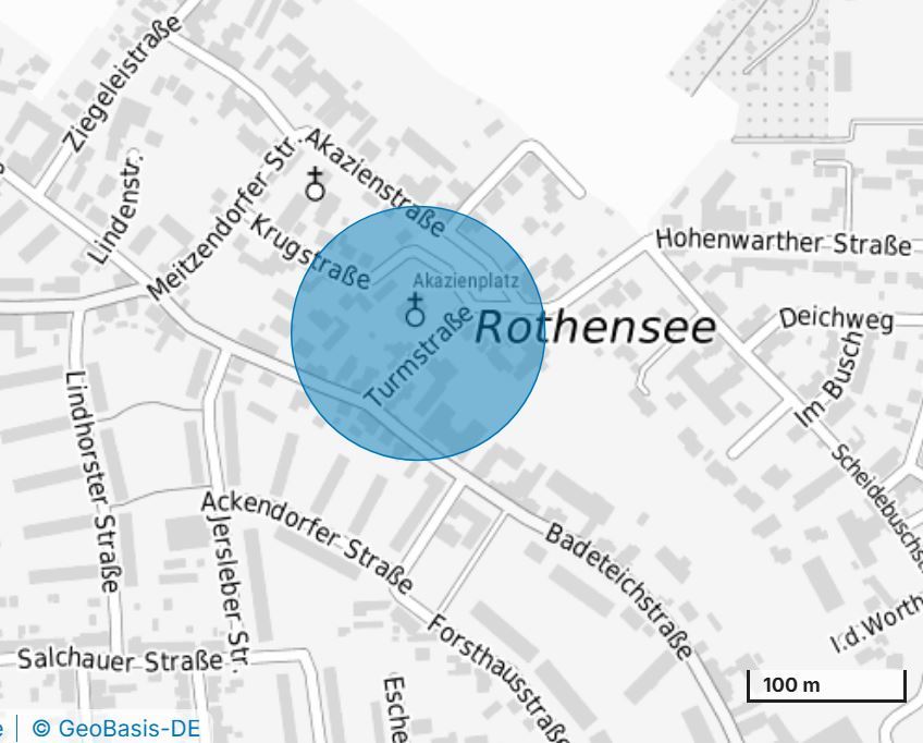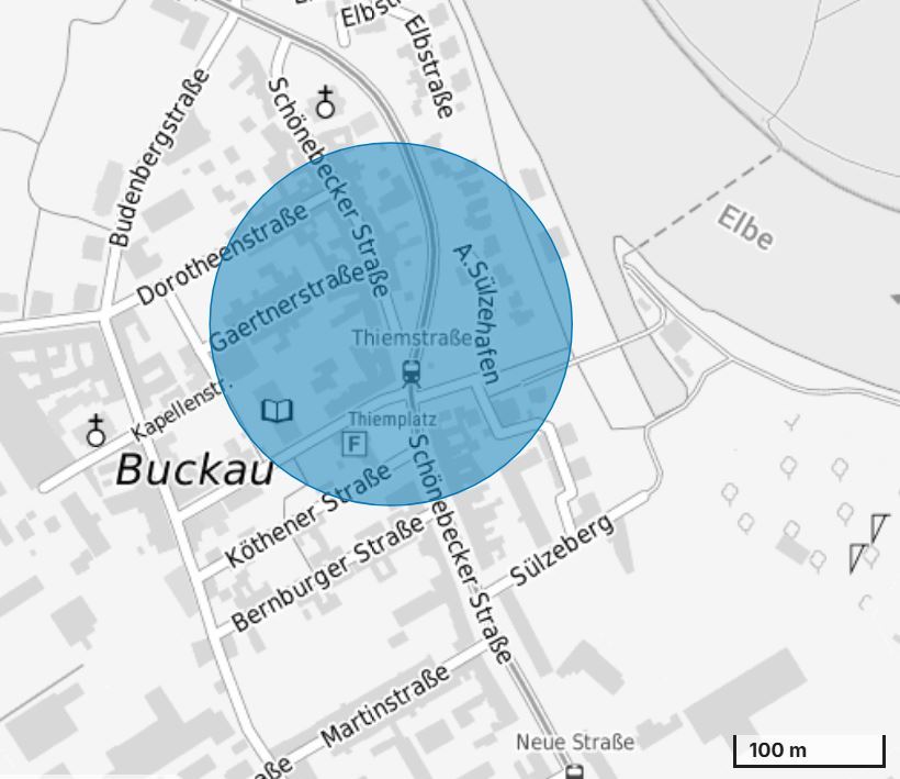 Das geografische Gebiet wird durch einen Kreis mit dem Radius von 100 m begrenzt mit dem Mittelpunkt auf der Koordinate 52.13001N 11.56336E und erstreckt sich vom Boden bis 150 m über dem Boden.