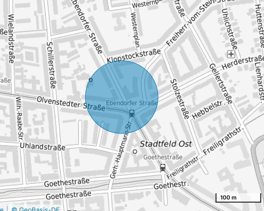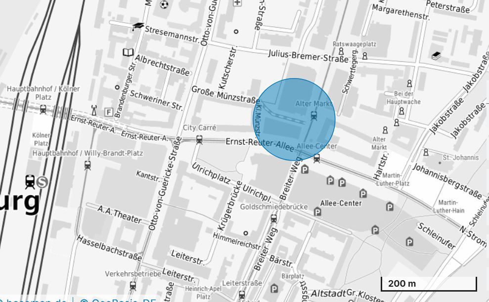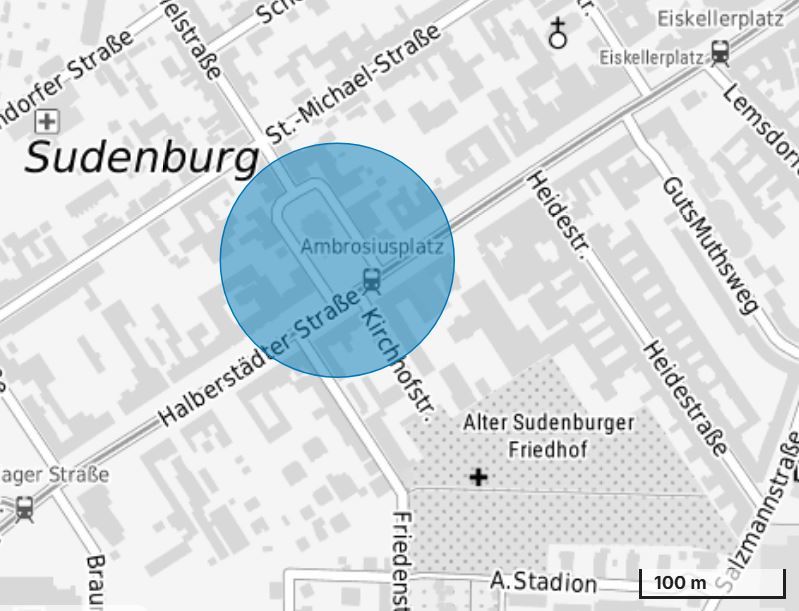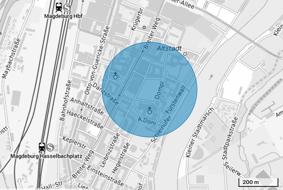 Das geografische Gebiet wird durch einen Kreis mit dem Radius von 150 m begrenzt mit dem Mittelpunkt auf der Koordinate 52.0899N 11.57338E und erstreckt sich vom Boden bis 150 m über dem Boden.