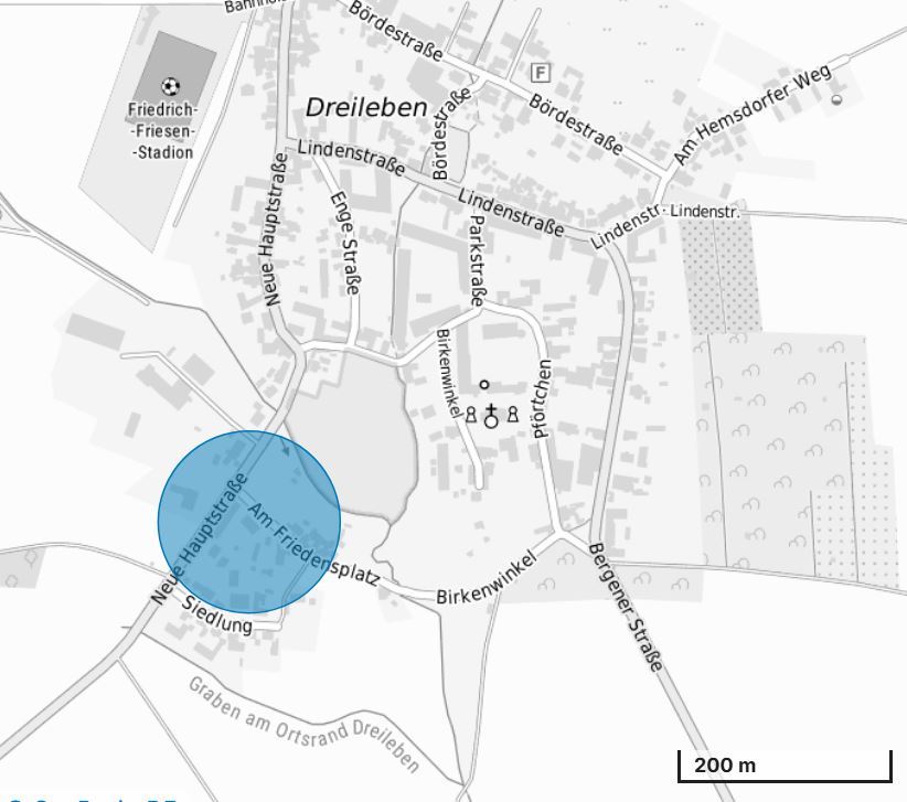 Das geografische Gebiet wird durch einen Kreis mit dem Radius von 100 m begrenzt mit dem Mittelpunkt auf der Koordinate 52.12542N 11.32861E und erstreckt sich vom Boden bis 150 m über dem Boden.