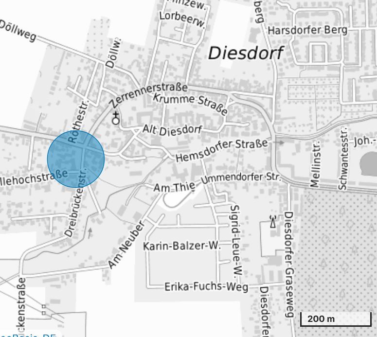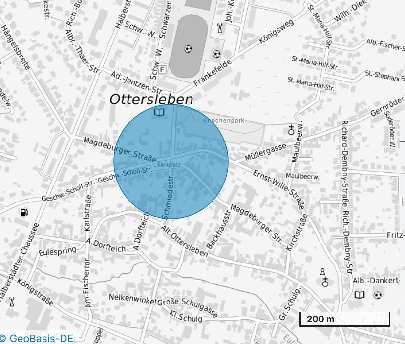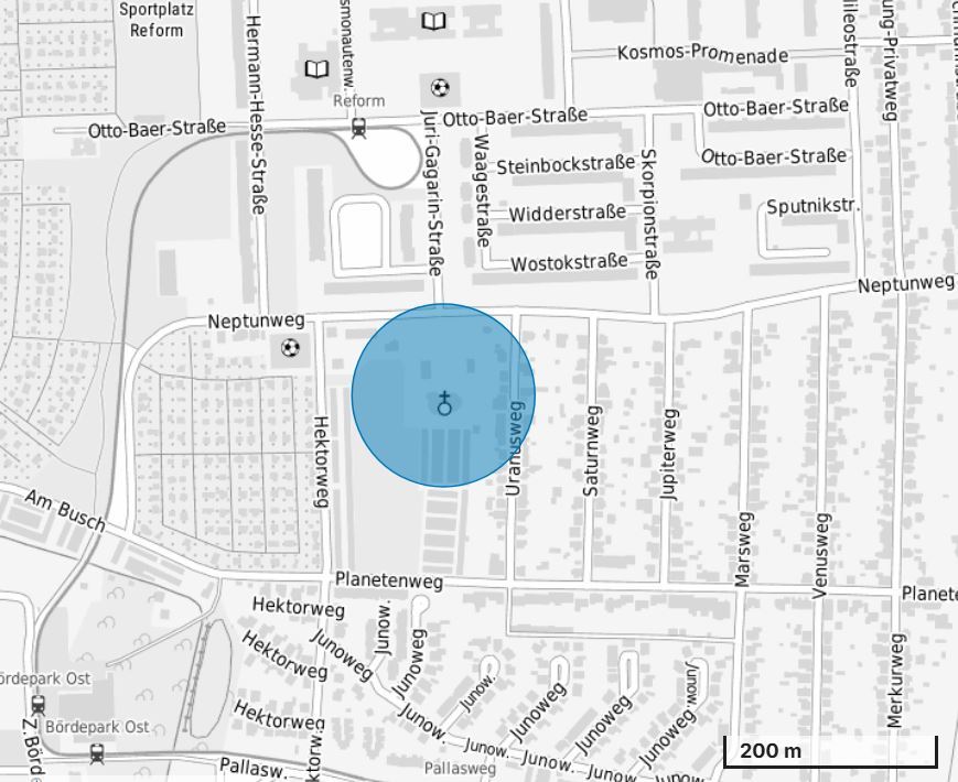 Das geografische Gebiet wird durch einen Kreis mit dem Radius von 300 m begrenzt mit dem Mittelpunkt auf der Koordinate 52.12569N 11.63487E und erstreckt sich vom Boden bis 150 m über dem Boden.